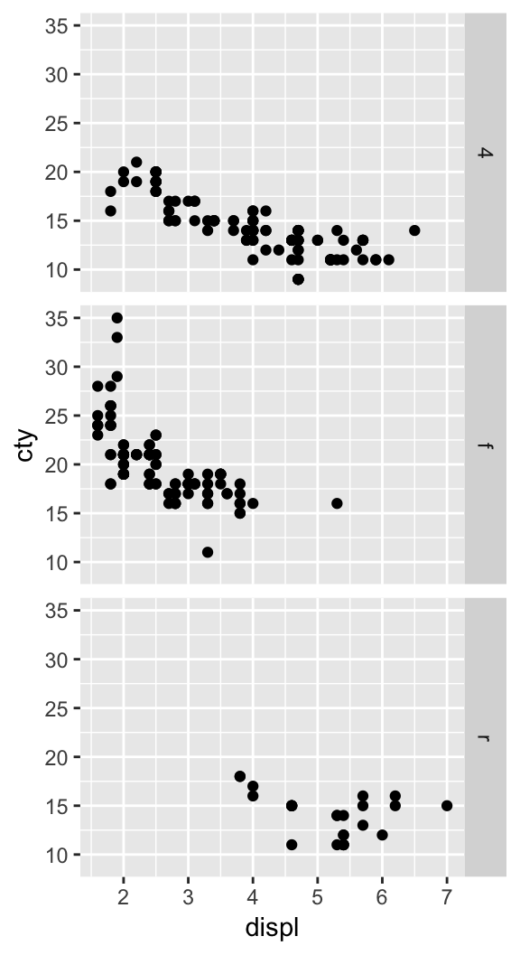 , short for variables. Instead of facet_grid(x + y ~ a + b) you can now write facet_grid(vars(x, y), vars(a, b)). The formula interface won’t go away; but the new vars() interface supports tidy evaluation, so can be easily programmed with.