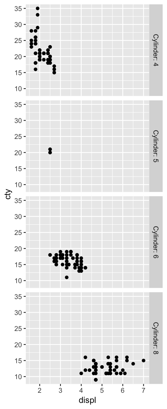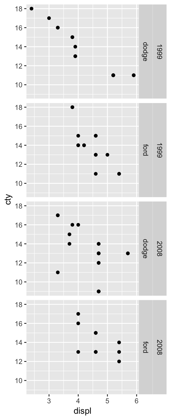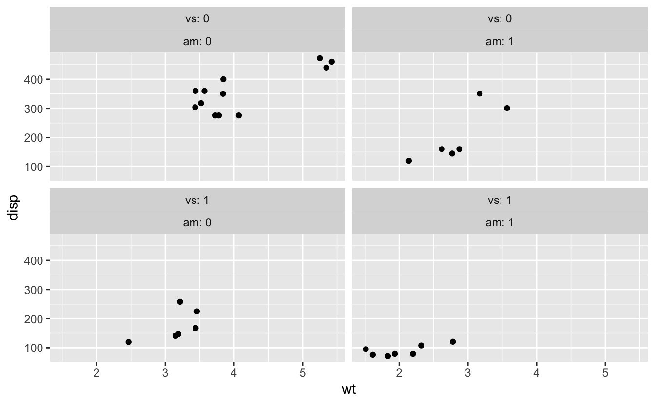vars() is used to supply variables or expressions, evaluated in the context of the dataset to form facetting groups.