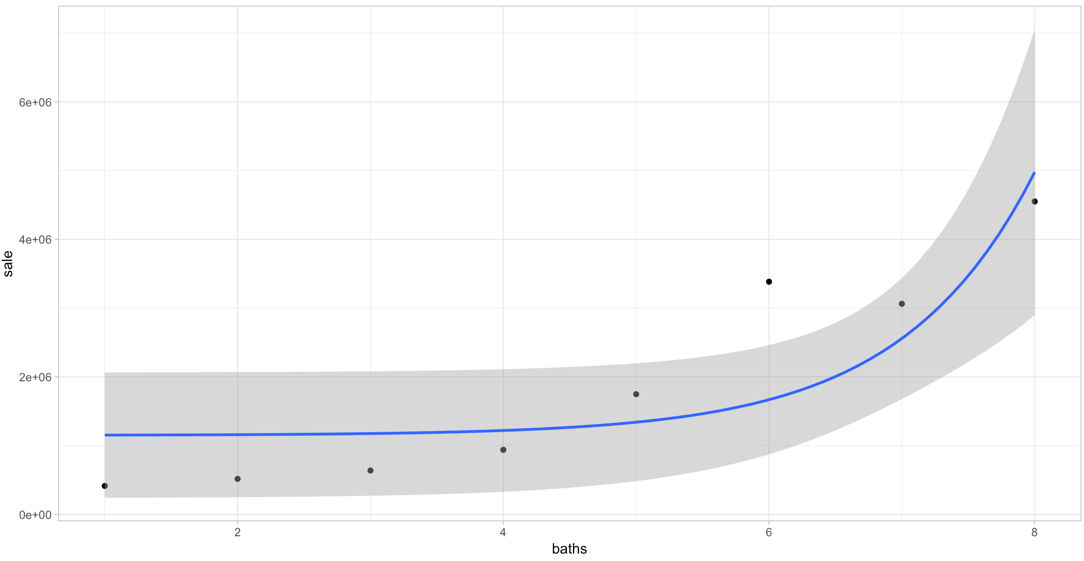 For instance, a colleague can reuse the sales-by-baths pin by retrieving it from RStudio Connect and visualize its contents using ggplot2: