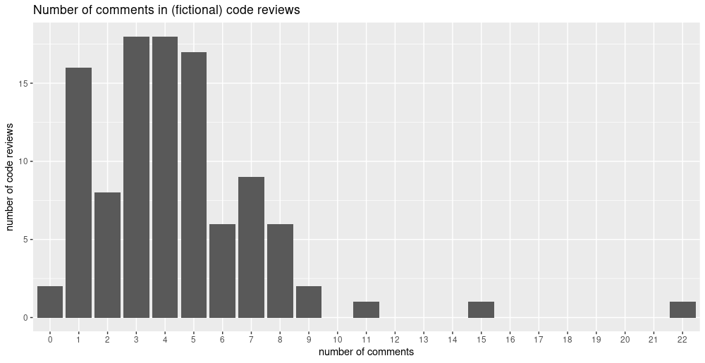 $$x \sim \mathcal{Poisson}(\lambda)$$This “joint distribution” only has a single member, a Poisson distribution, that is supposed to model, say, the number of comments in a code review. We also have data on actual code reviews, like this, say 3: