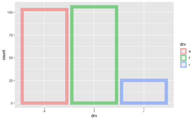 Furthermore, it is now possible to perform multiple mapping for the same aesthetic, using the stage() function. This can be used to e.g. set alpha on the stroke of a polygon (the default is to only apply alpha to fill for polygon-type geoms):