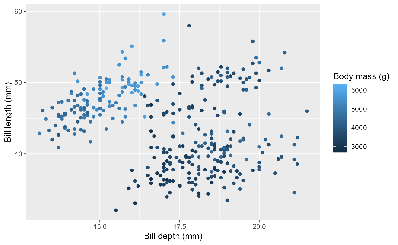 p <- ggplot(penguins, aes(bill_dep, bill_len, colour = species)) +