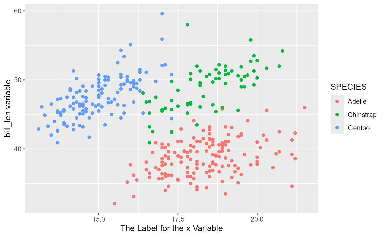 We have added new ways that a plot retrieves labels for your variables. It is an informal convention in several packages including gt, Hmisc, labelled and others to use the ’label’ attribute to store human readable labels for vectors. Now ggplot2 joins this convention and uses the ’label’ attribute as the default label for a variable if present.