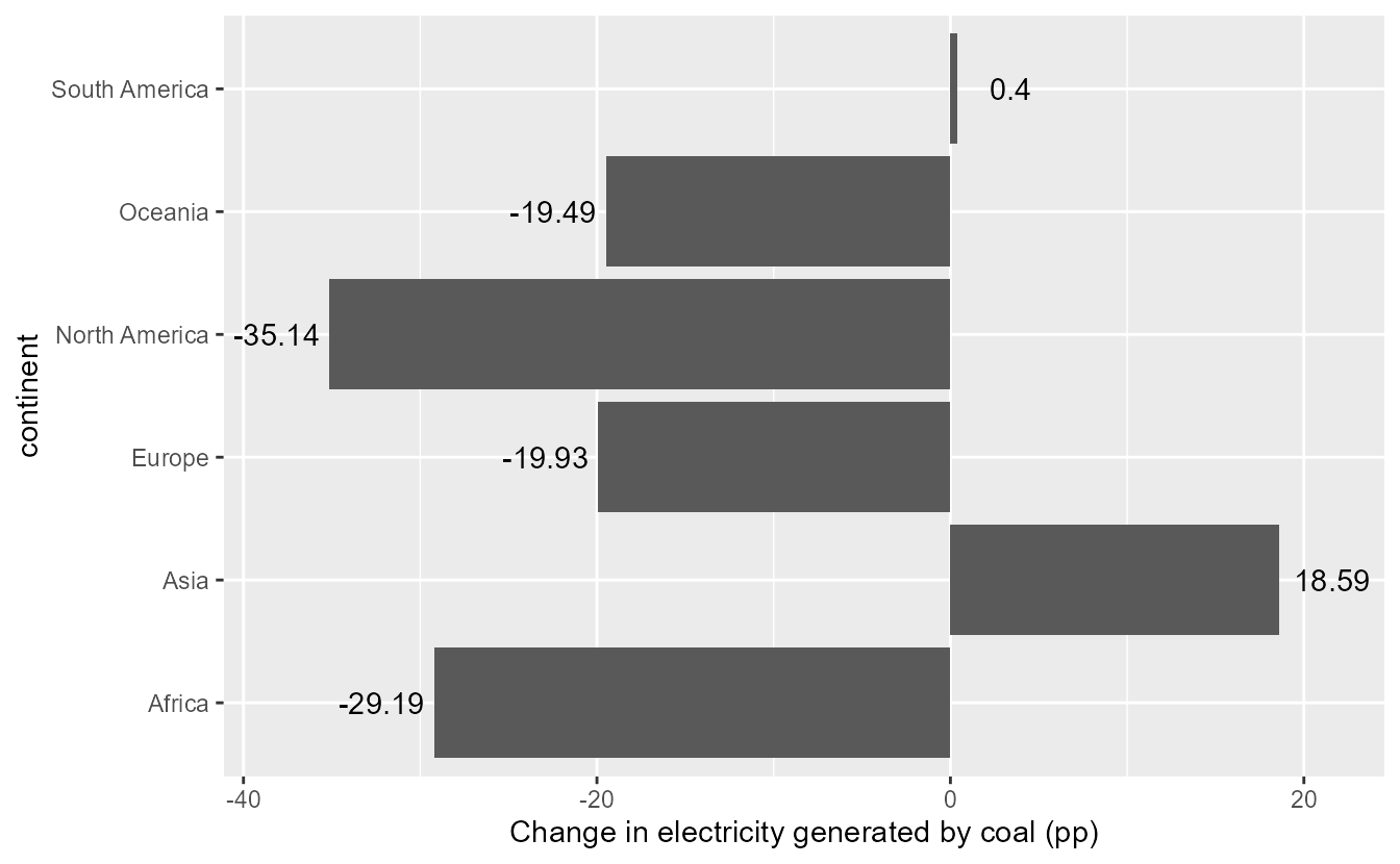 It has been possible to use reverse transformations for scales to flip a plot direction. You could even use scales::transform_compose() to do, for example, a reversed log10 transformation to highlight the smallest p-values. However, the transformation approach has a few limitations, notably that discrete scales do not support transformations and not all coords obeyed transformed scales. You can’t really combine coord_sf() + scale_x_log10() for example. To remedy this limitation, coords now have a reverse argument that can typically be "none", "x", "y" or "xy" that reverse some directions. If you are from the lands down under, you can now plot a map in your native orientation.